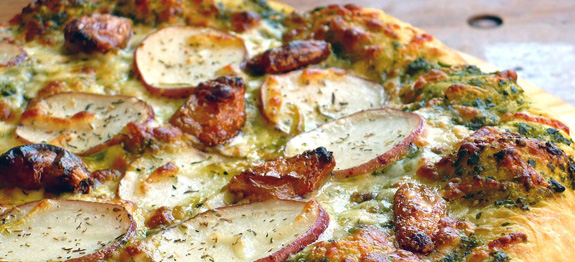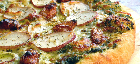 Pesto Pizza With Roasted Garlic & Potato